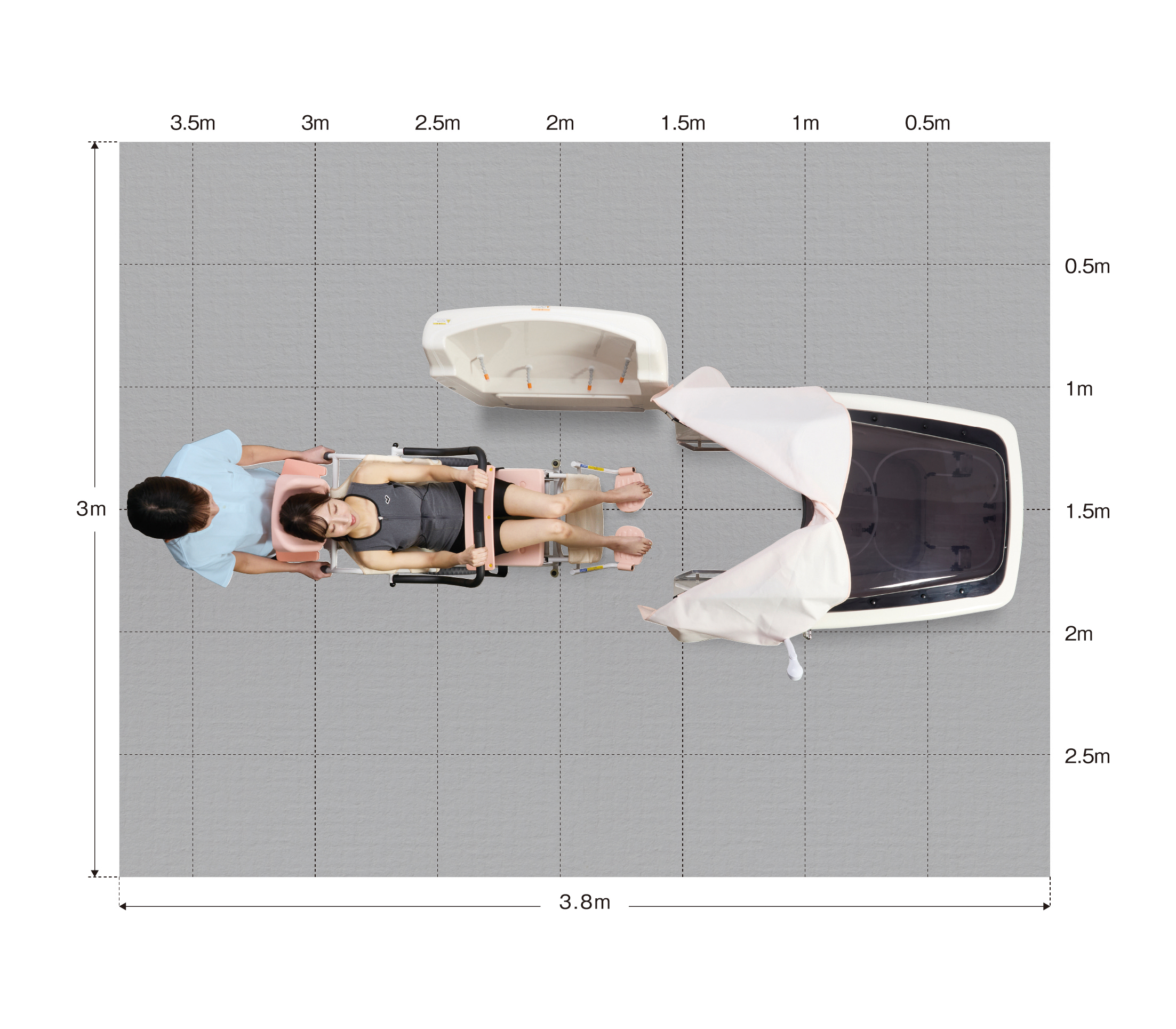 フルフラットにできるので、洗身などの介助も容易に行えます。