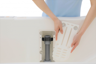 溢れた湯を排出し水位を調節するオーバーフローは、汚れが集まりやすい部分です。カバーの付け外しを工具なしで簡単に行えるようになりました。これにより今まで洗浄できなかった気になる内部までお掃除できます。