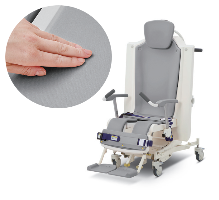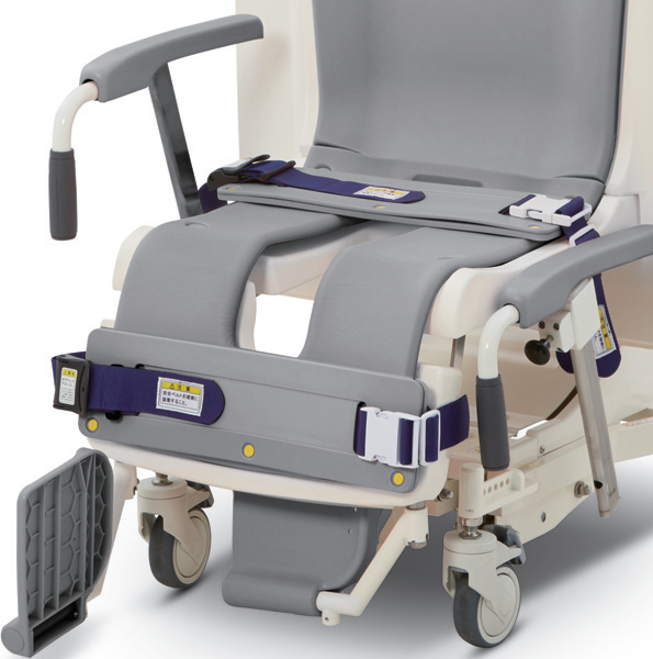 | 機能・性能 | 安全ベルト、ベルトパッド、スライド式調整枕、U字座部、旋回ハネ上げフットレスト、収納式安全手すり(回転グリップ・アームレスト付) |