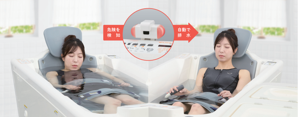 警告音で周囲に危険をお知らせしながら、浴槽内のお湯を自動で排水。
