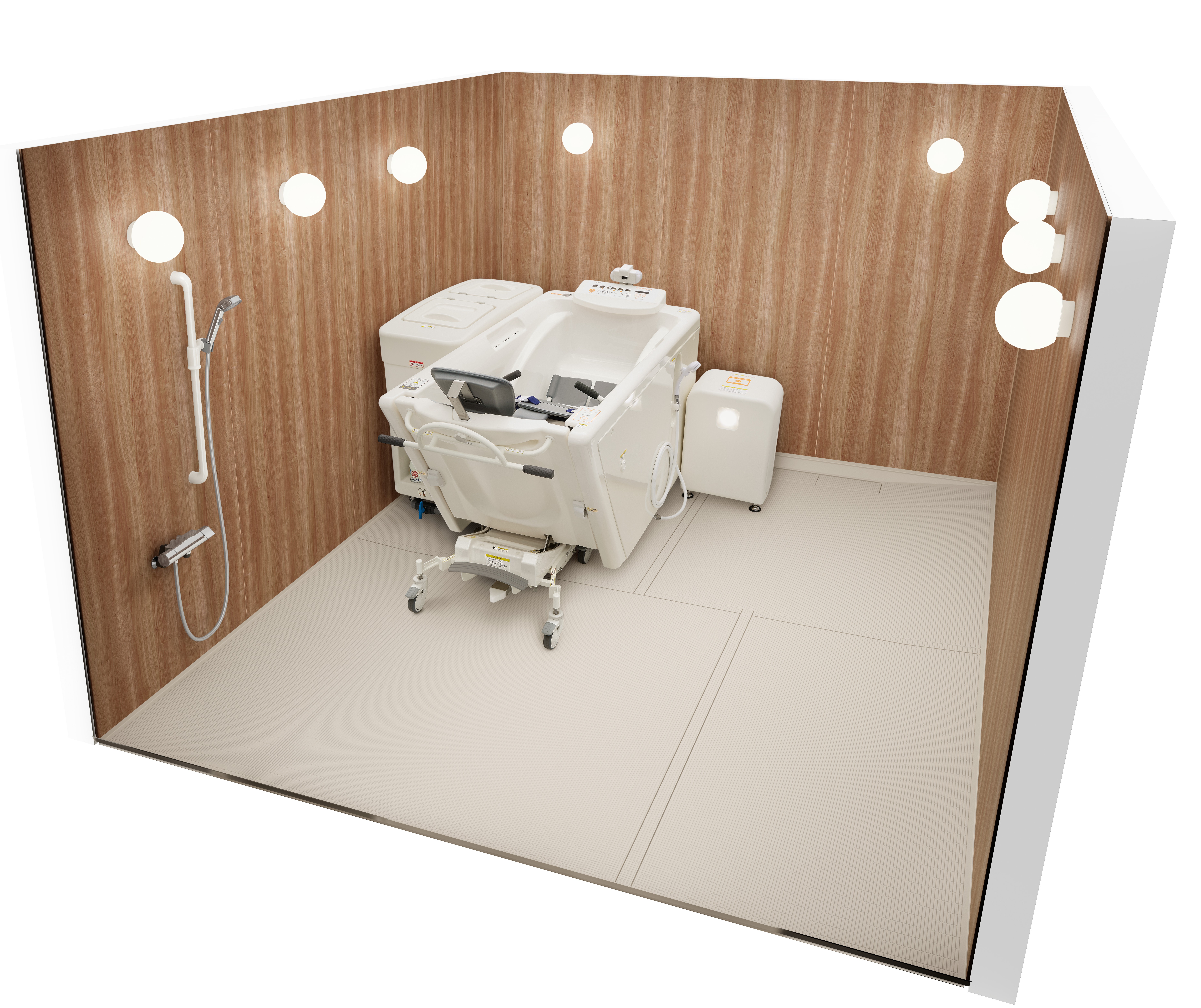 | 機能性能 | 温度管理システム、電動扉ロック機能、停電時扉解除機能、非常時扉解除機能、適正水位自動停止機能、デジタル温度表示(タンク・貯湯・シャワー・たし湯・おふろ)、入浴時間表示、貯湯タンク自動給湯機能、音声ガイド、ハンドシャワー1基、気泡発生装置、漏電ブレーカー内蔵、予備排水栓(プッシュボタン式)、オーバーフロー(固定式)、失禁時湯入替機能、配管除菌機能、配管洗浄機能、薬液濃度調整機能、情報表示画面、言語選択機能(日本語・英語・中国語) |